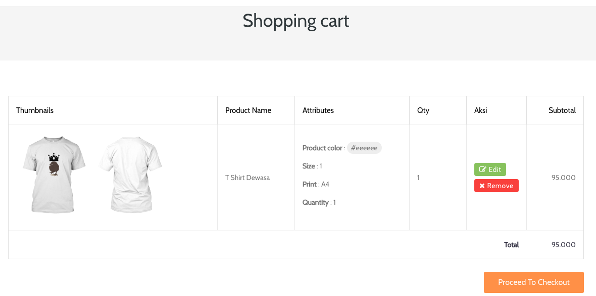 Dihalaman "Shopping Cart", anda bisa memastikan kembali item-item yang anda ingin pesan, apabila sudah sesuai, klik tombol "Proceed To Checkout"